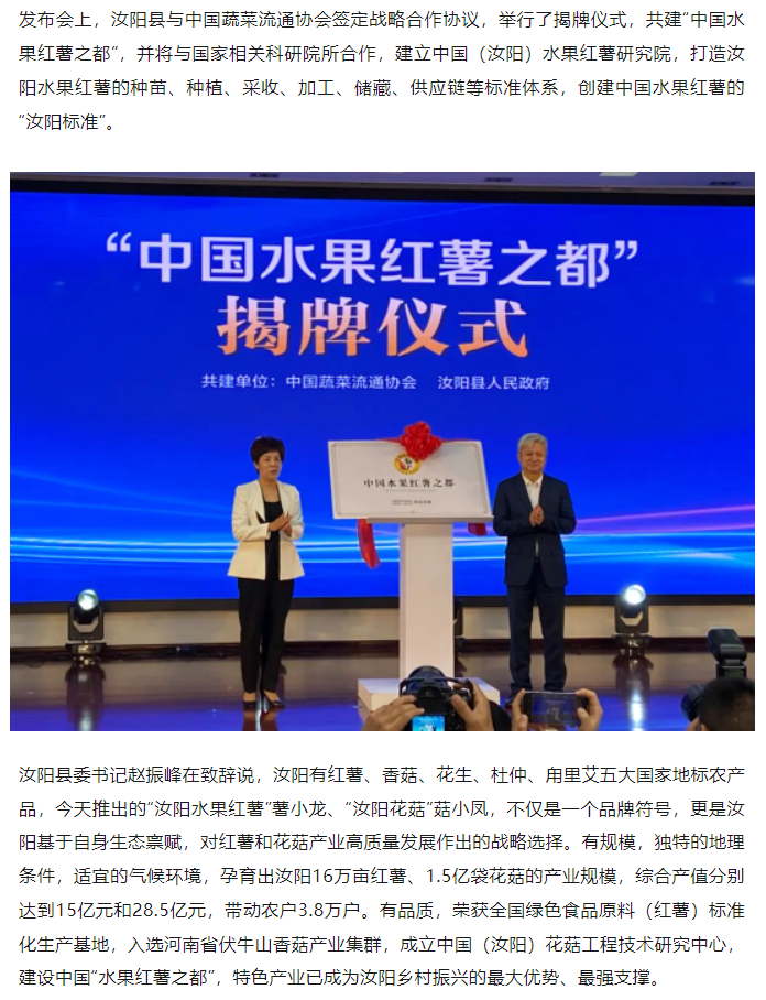汝阳水果红薯、汝阳花菇区域公用品牌联袂发布,开启高质量发展新篇章